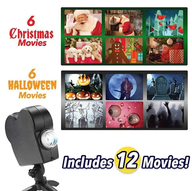 Christmas Halloween Window Projector Lamp Display Screen Outdoor Holiday Led Holographic Projection Lamp Cartoon Movie Home Deco